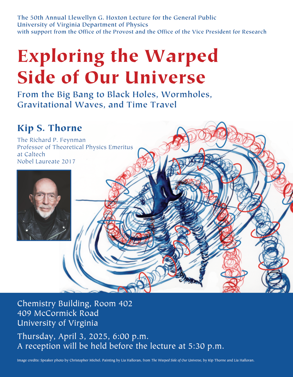 Join us for the 50th Annual Llewellyn G. Hoxton Lecture for the General Public. This year's speaker will be Nobel laureate Kip Thorne. His talk is titled: